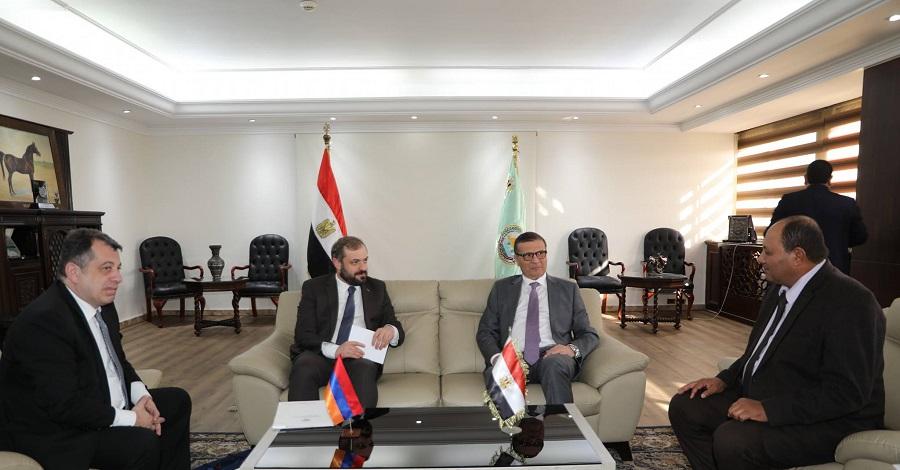 استقبل الدكتور علاء فاروق، وزير الزراعة واستصلاح الأراضي، كيفورك بابويان، وزير الاقتصاد بجمهورية أرمينيا، والوفد المرافق له، لبحث سبل تعزيز التعاون الثنائي بين البلدين في المجالات الزراعية المختلفة