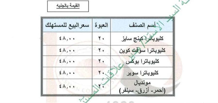 كما ارتفعت منتجات كلًا من كليوباترا كينج سايز، وكليوباترا سوفت كوين، وكليوباترا بوكس، وبوسطن/ بلمونت، مونديال ( أحمر ـ أزرق – سيلفر)، ومونديال سويتش ( مونتول – بلوبيري)، وكليوباترا بلاك ليبول، وكليوباترا سوبر، وماتوسيان سوبر، إلى 44 جنيه للعبوة التي تحتوى على 20 سيجارة.