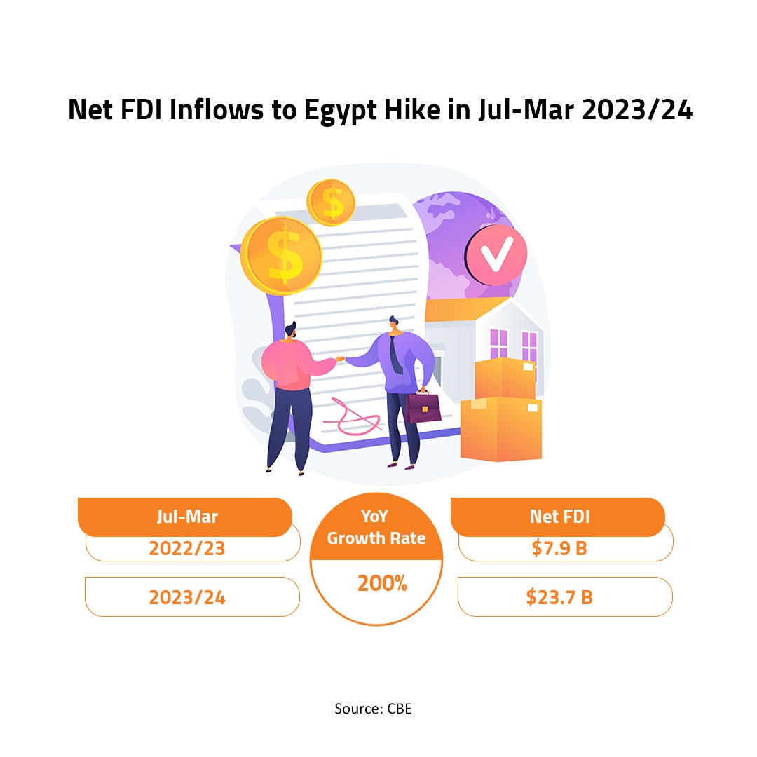 Egypt’s net foreign direct investment (FDI) flows hit $10 billion in 2023, the highest in 15 years.