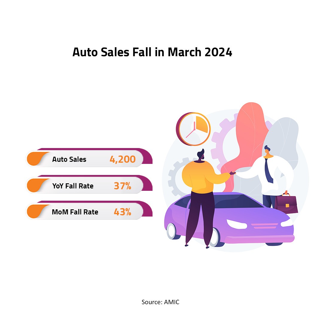 Egypt’s sales of passenger cars fell by 76% year on year (YoY) in March to 4,638 vehicles, compared to 18,943, according to the Automotive Market Information Council (AMIC).