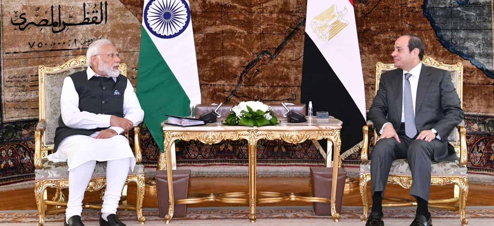 Egyptian President Abdel Fattah El-Sisi met with the Indian Prime Minister Shri Narendra Modi to mull bolstering bilateral relations in several fields.
