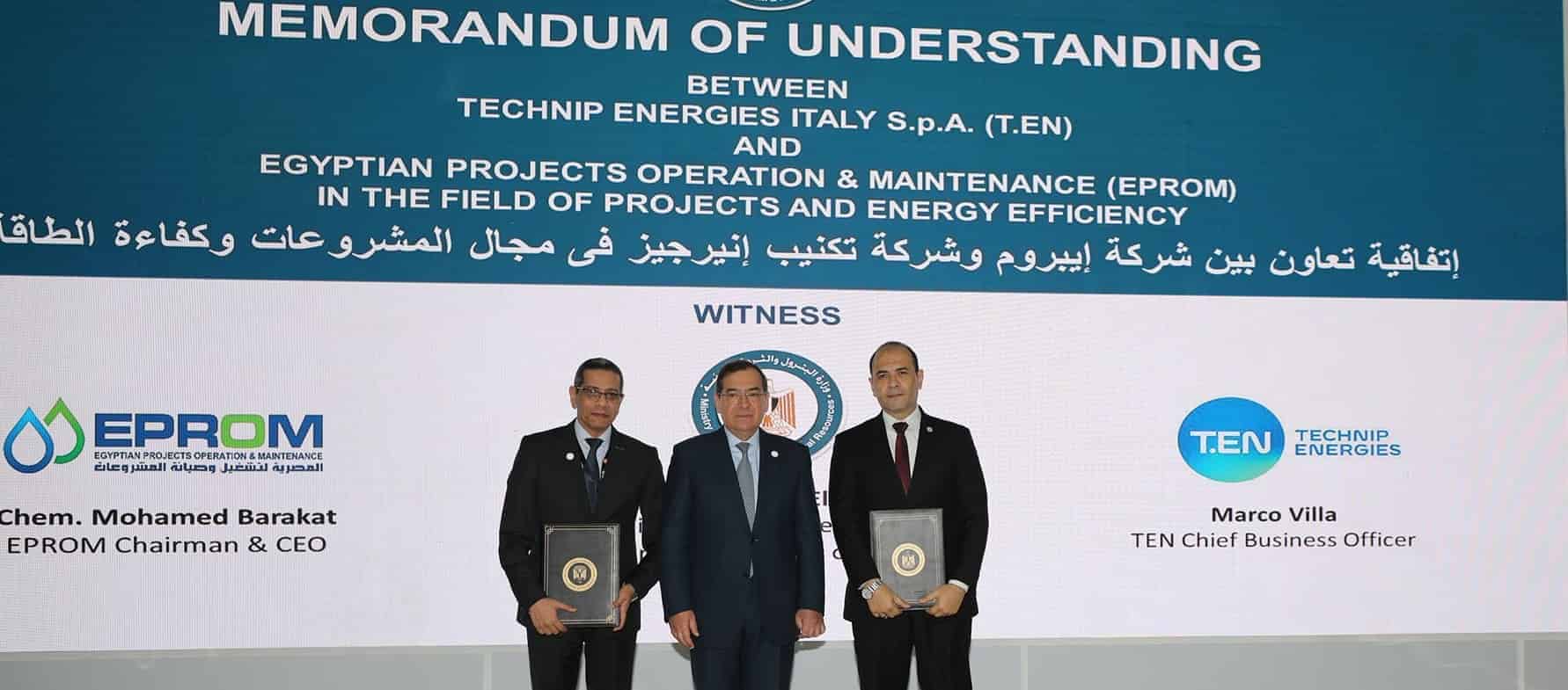 The Egyptian Projects Operation and Maintenance (EPROM) has signed a memorandum of understanding (MoU) with the Technip Energies Italy in the field of operation and maintenance of projects and energy transition.
