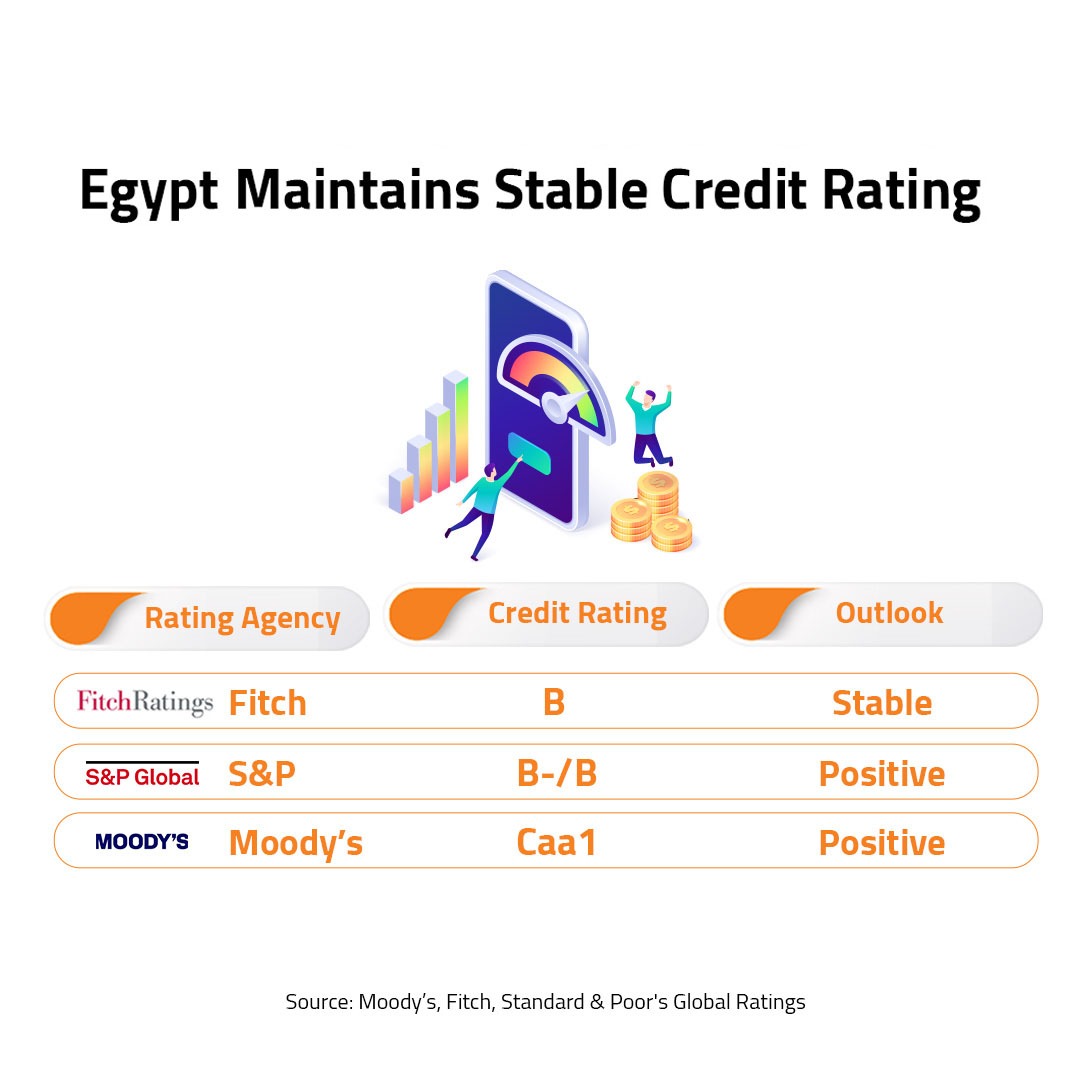 S&P Global Ratings has upgraded Egypt’s long-term sovereign credit rating to ‘B’ from 'B-', while Fitch Ratings affirmed its ‘B’ rating; both with a ‘stable’ outlook.