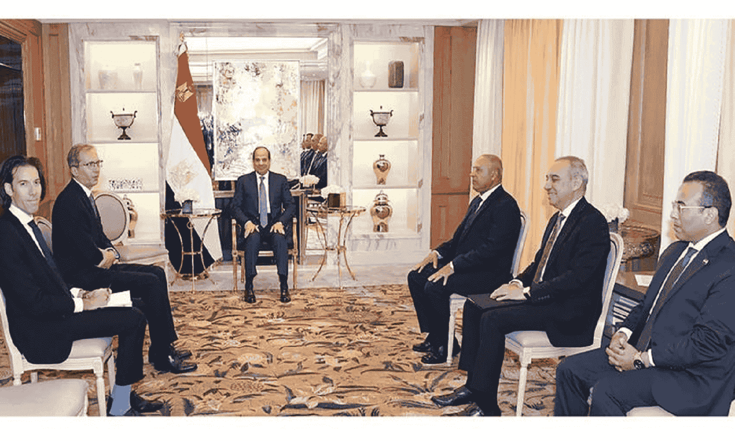 President Abdel Fattah El-Sisi met with Chairman and CEO of Alstom Group Henri Poupart-Lafarge in Paris to discuss enhancing joint cooperation in the transportation field.