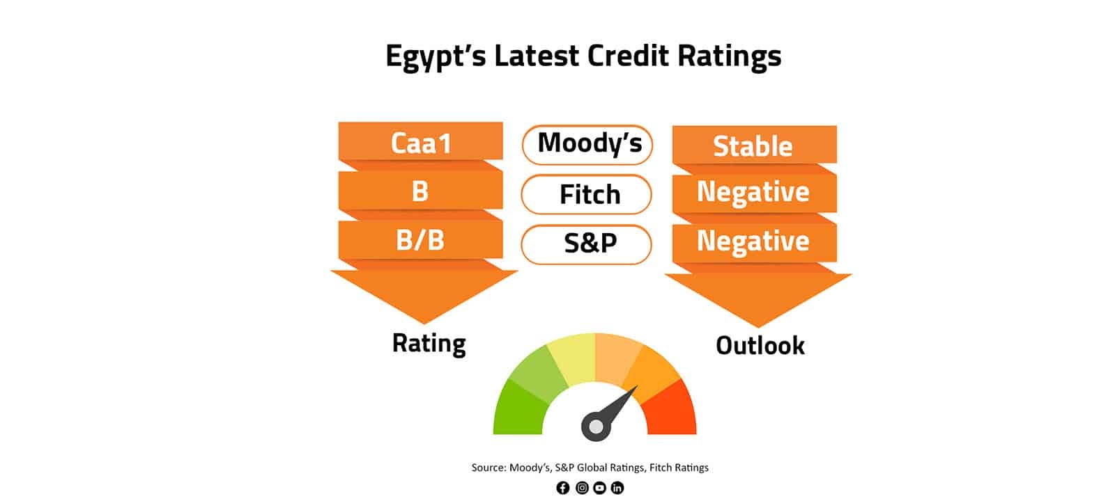 Arab Finance: Global ratings giant Moody's has downgraded Egypt's outlook from stable to negative, citing growing concerns about the country's credit profile, as per a recent statement.