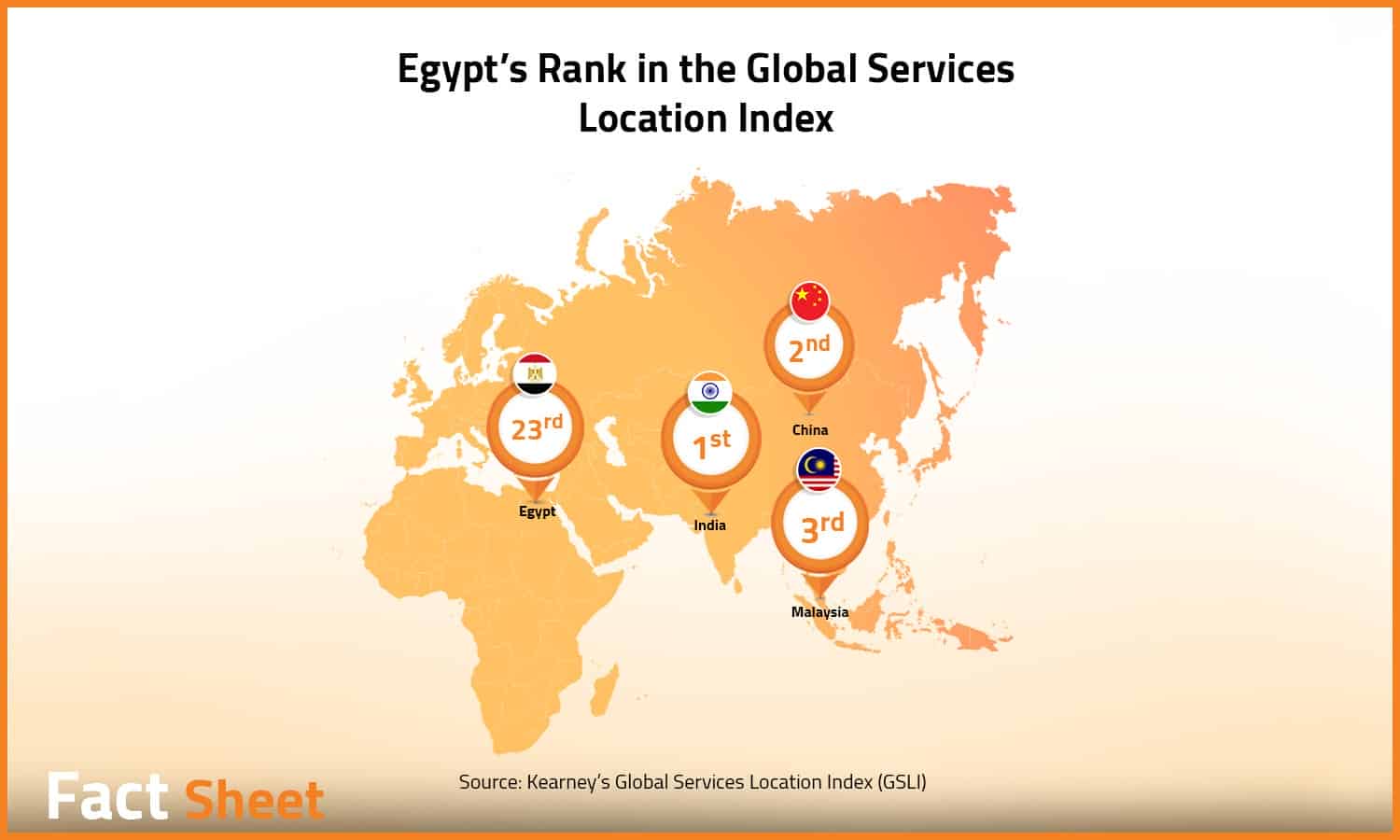 The Egyptian government has been working to transform Egypt into a hub for outsourcing, especially in information and communication technology (ICT) services. Egypt has a set of competitive advantages to capitalize on and achieve this goal. These advantages include the large pool of young talents with high technical skills, the competitive average wage in the ICT field, the well-established infrastructure, and more. In this Factsheet, we will explore the economic importance of ICT services and the government strategy for outsourcing ICT services, shed light on Egypt’s competitive advantages, and define Egypt’s global position as an ICT outsourcing destination.