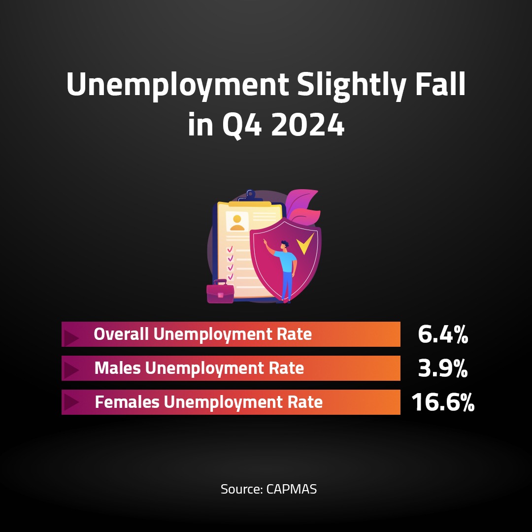 Egypt's unemployment rate decreased to 6.4% of the total labor force in the fourth quarter (Q4) of 2024, down 0.3% from the previous quarter.