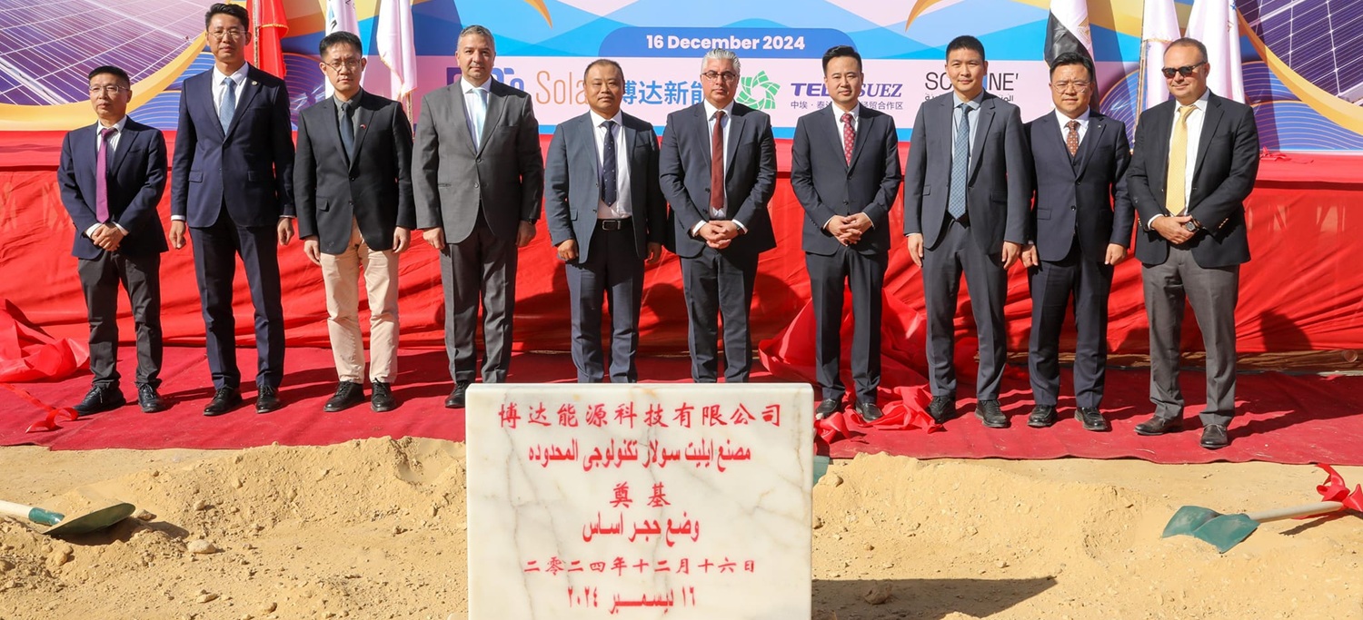 Chairman of the General Authority for the Suez Canal Economic Zone (SCZONE) Waleid Gamal El-Dien witnessed the laying of the foundation stone of China-based Elite Solar PV’s solar energy plant at TEDA-Egypt area in the Sokhna Industrial Zone.