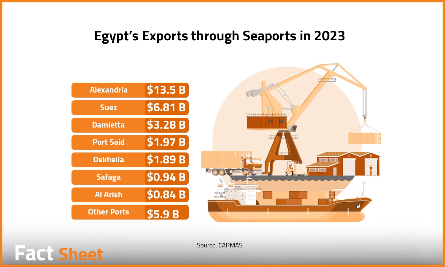 Egypt, strategically located at the crossroads of Africa, Asia, and Europe, boasts a network of vital maritime ports that play a pivotal role in global trade and connectivity. To capitalize on this, the Egyptian government has set a plan to expand and modernize the ports’ infrastructure to turn the country into a regional and international trade hub. In this Factsheet, we explore the significance of these ports, Egypt’s global position in terms of ports’ connectivity, and the government plan for Egypt to become a trade hub.